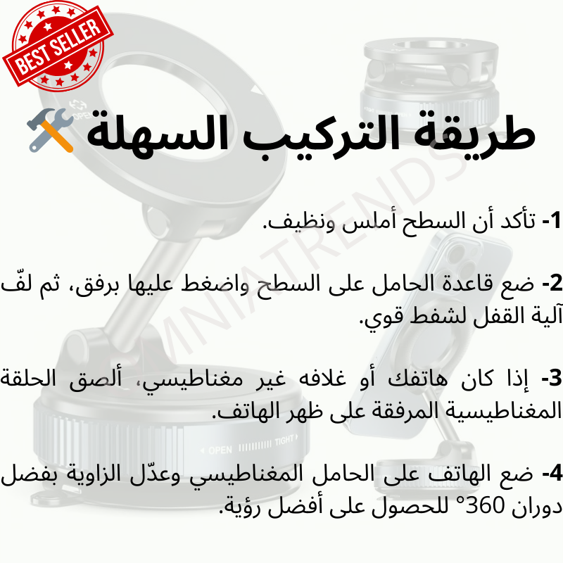 اختر هذا الحامل لقوته 💪 ومرونته 🔄 في مكان واحد. يوفر ثباتًا فائقًا لهاتفك 📱 مع دوران 360° لتعديل الزاوية بسهولة 👀. يصلح للاستخدام في السيارة 🚗، المطبخ 🍳، المكتب 🖥️، الجيم 🏋️♂️ أو أي سطح أملس ✨، ليحافظ على هاتفك آمنًا 🔒 ويجعل حياتك اليومية أكثر راحة وسهولة 😊.